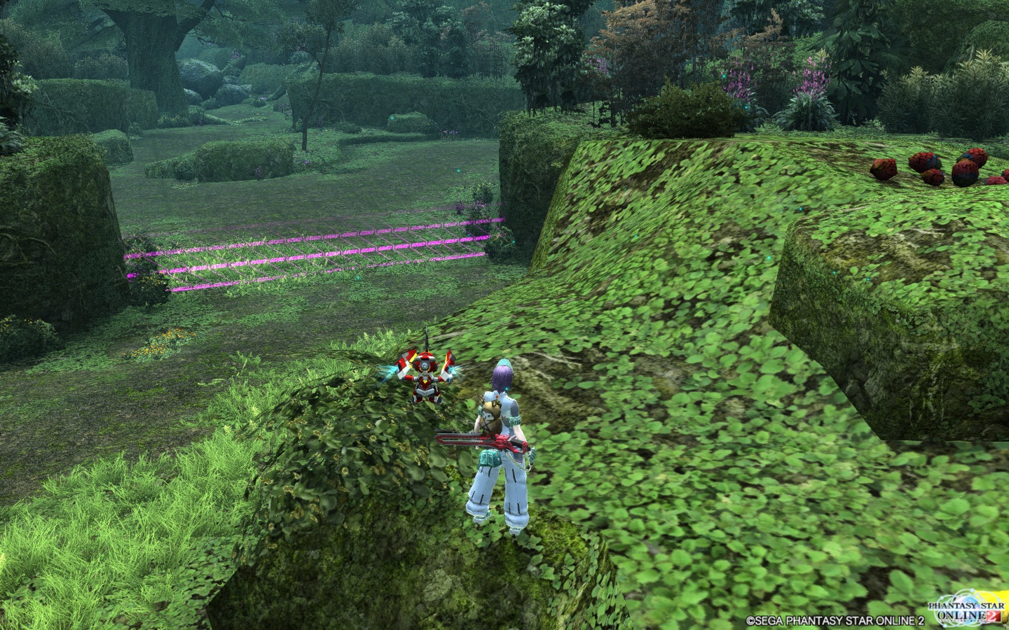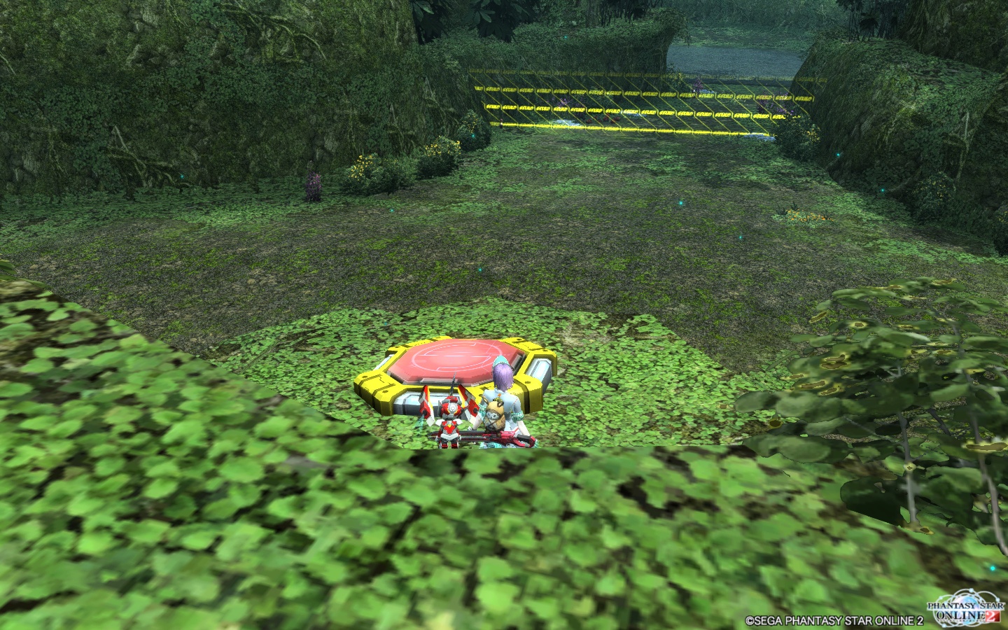 右側も左側も転送されると、草が生えている部分がありますので、草を全て刈ります。するとスイッチが現れるのでそれを踏みましょう。
