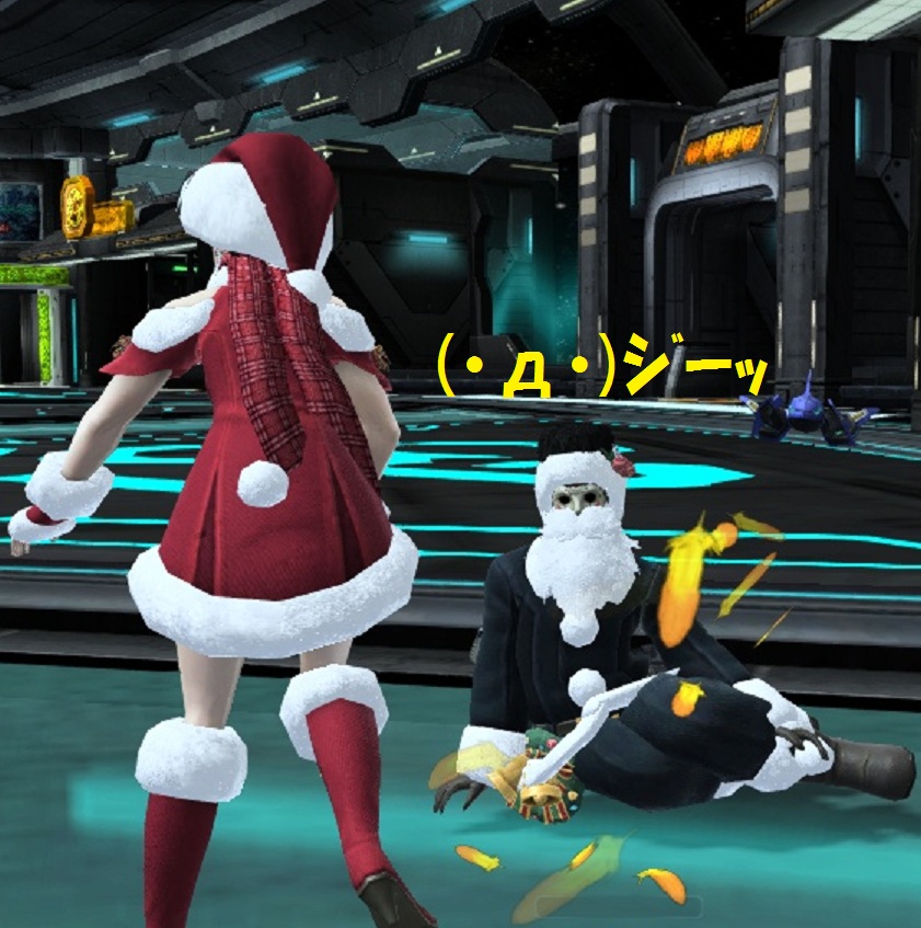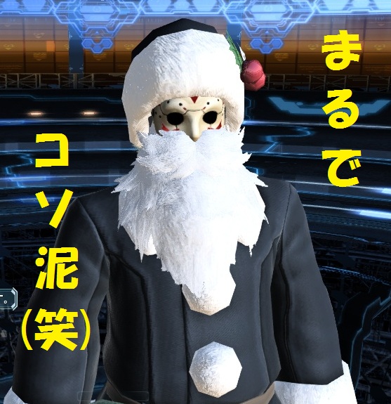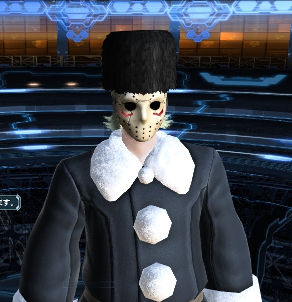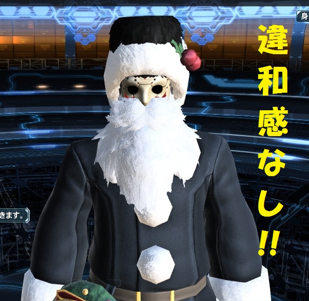 ホッケーマスクとBサンタスーツを着用し、